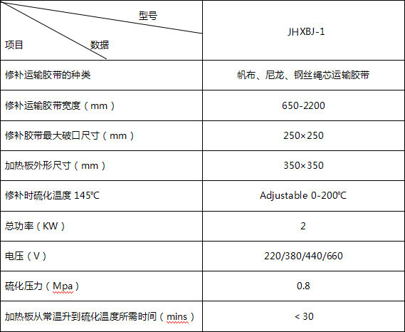 帶表面點狀損壞或洞穿,而使芯層外露,漏料,必須及時修理,使用本修補器,可在運輸機停機后進行膠帶表面的硫化修補。